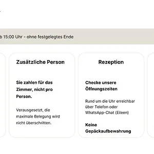 - Einchecken: von 15:00 bis 23:59